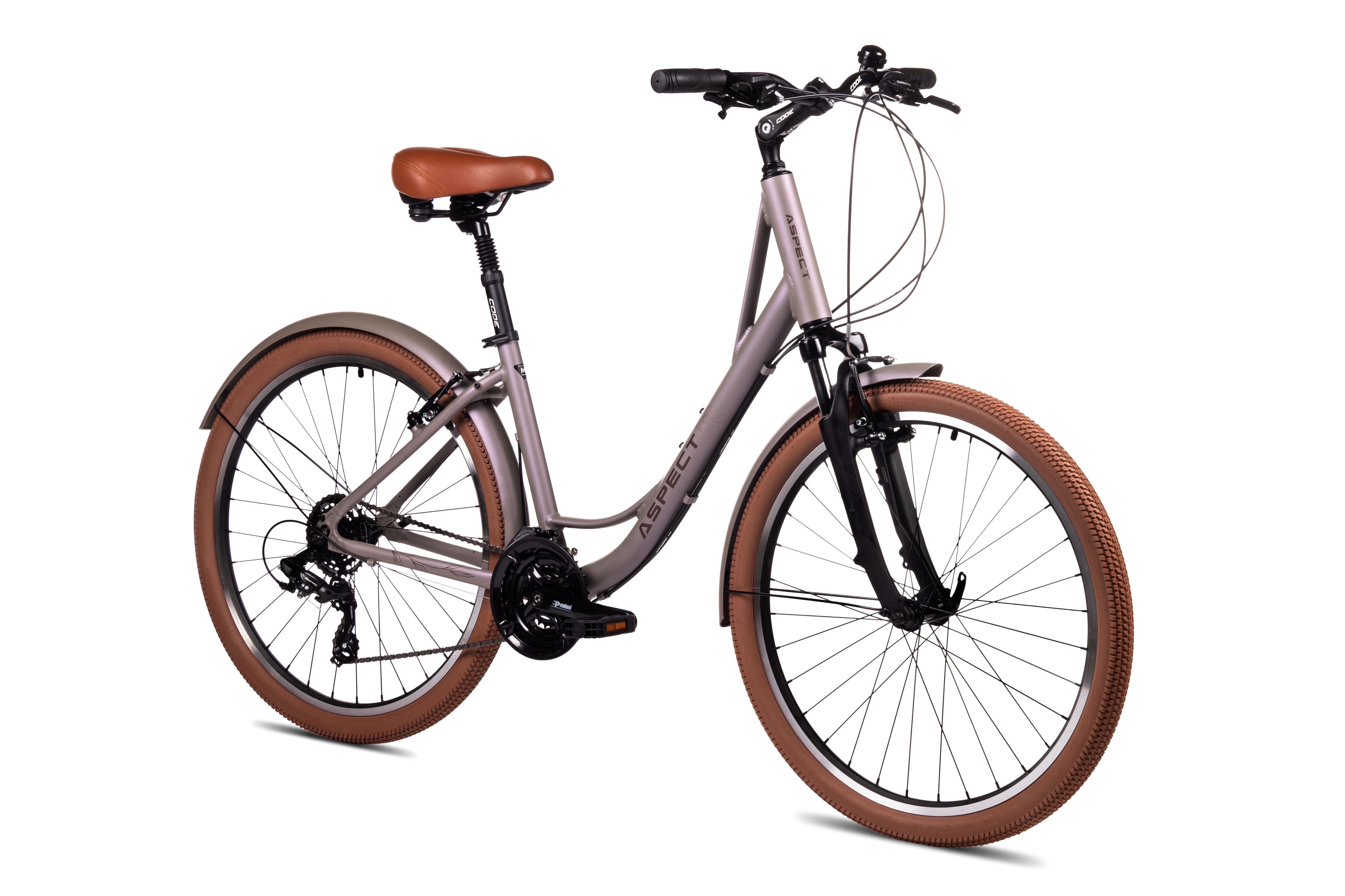 Бренд ASPECT Модель 26 CITYLIFE Год 2024 Серия CITYLIFE Материал рамы Алюминий (Alloy) Рама/описание ALU 6061 Тип вилки Амортизационная (пружина) Вилка/регулировки ZOOM 141 45mm Диаметр колес 26" Резина Kenda K1118 26x1.95 Тормоза Ободные (V-brake) Уровень оборудования Начальный Шифтеры Shimano Tourney ST-EF500 Переключатель передний Shimano Tourney FD-TY600 Переключатель задний Shimano Tourney RD-TY300D Кассета Shimano HG200-7 12-32T Каретка 68*119mm Шатуны PROWHEEL Alloy 24/34/42T*170mm Количество скоростей 21 Руль 25.4*620mm,H:50mm,6° Вынос 90mm,-10+50° Подседельный штырь Alloy 31.6mm Пол/возраст Женский -